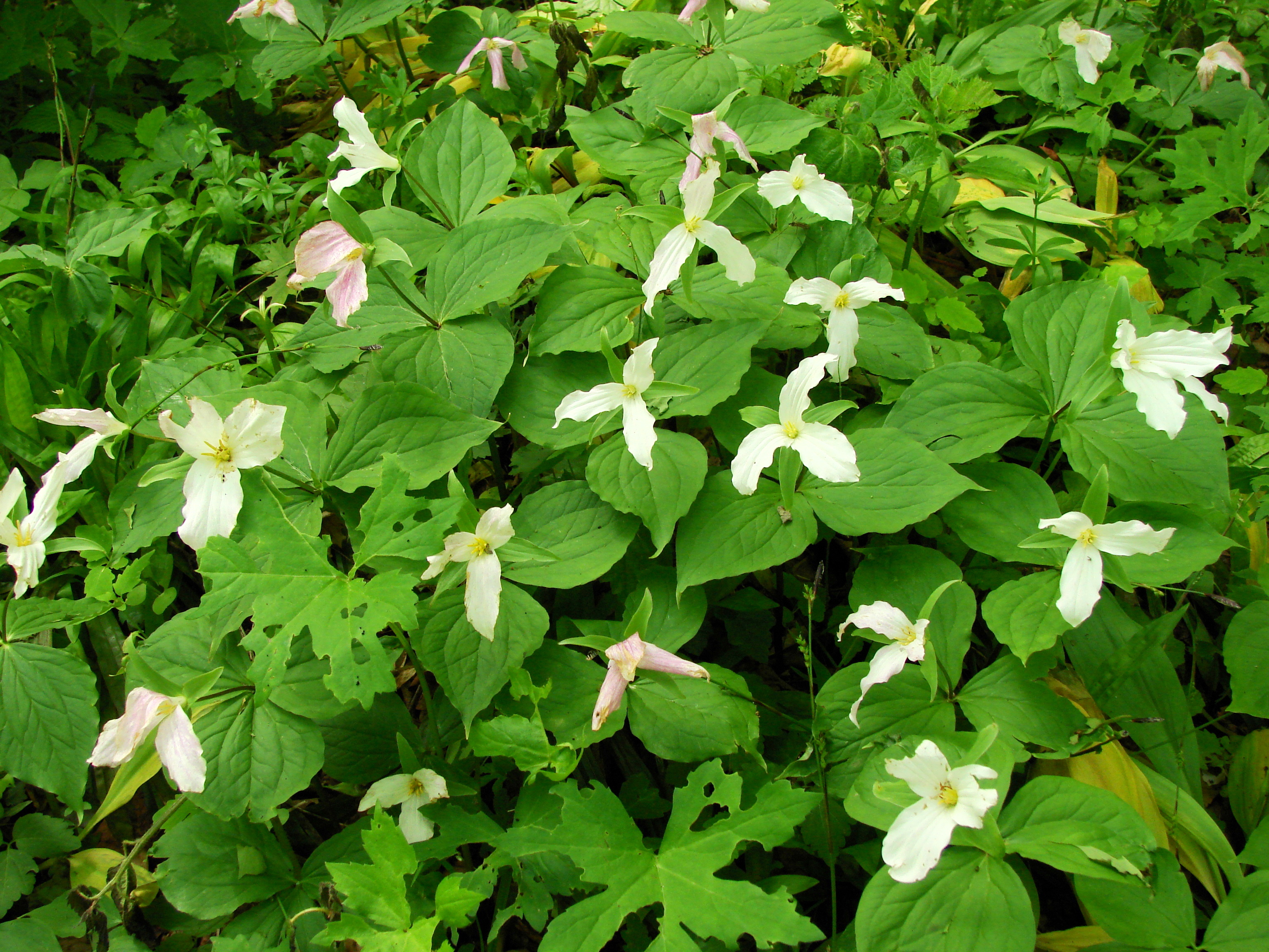 On Sunday morning a group of six of us went back down to the southern end of the park and hiked the Blacksnake Mountain Trail. This was another rich area that had a large hillside with many calcareous springs emanating from it. The hillside was covered with many spring wildflowers that were very healthy and in full flower. We had never seen so many plants of yellow mandarin, Disporum lanuginosum, and never any so large! On the way out of the park a few of us stopped in an area where twinleaf, Jeffersonia diphylla, had been seen in the past but we didn’t find any plants.
