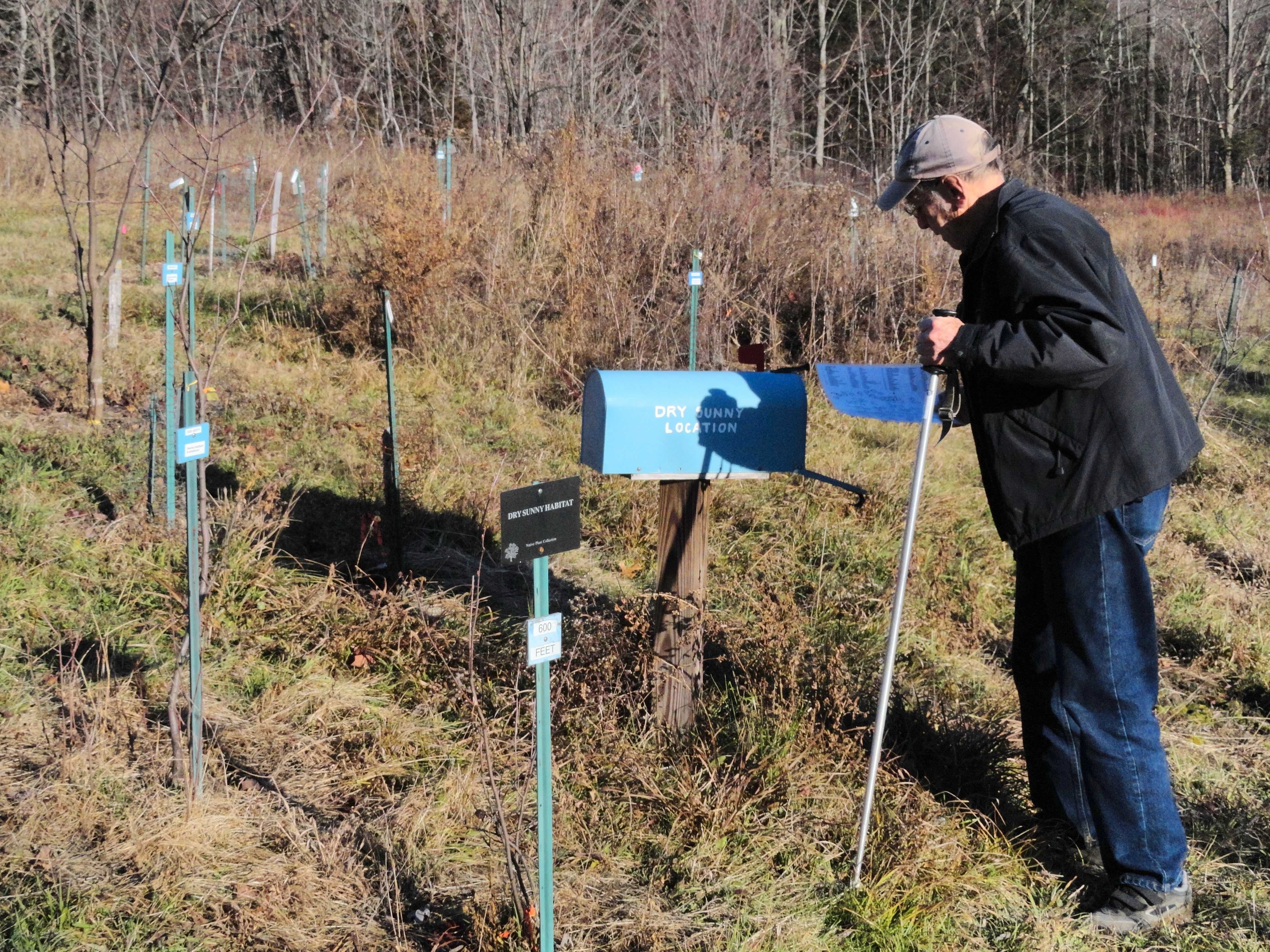 Ed pulls a map from one of the discovery mailboxes along the trail.