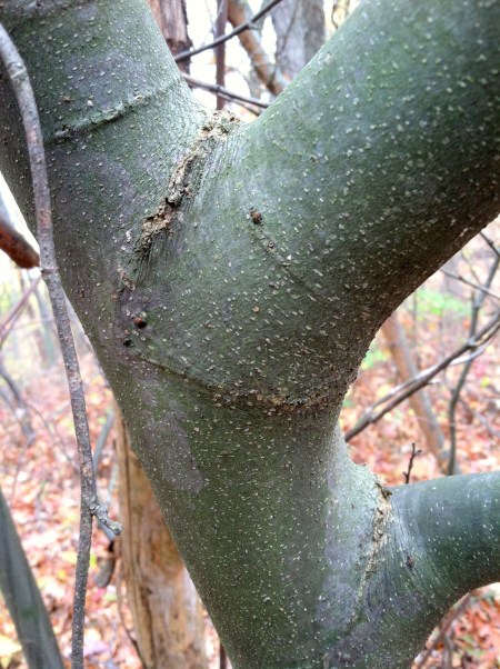 A real treat! The bark of a young American chestnut, smooth with small white lenticels.