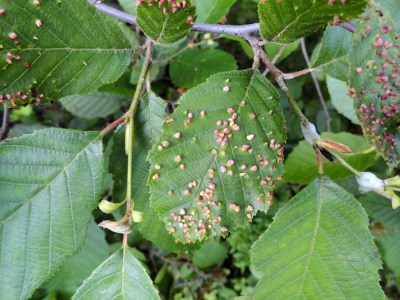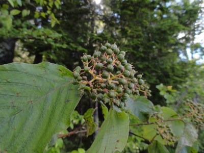 Red elderberry flowers, Sambucus racemosa var. racemosa, are still in bud and the leaves look like something is affecting them.