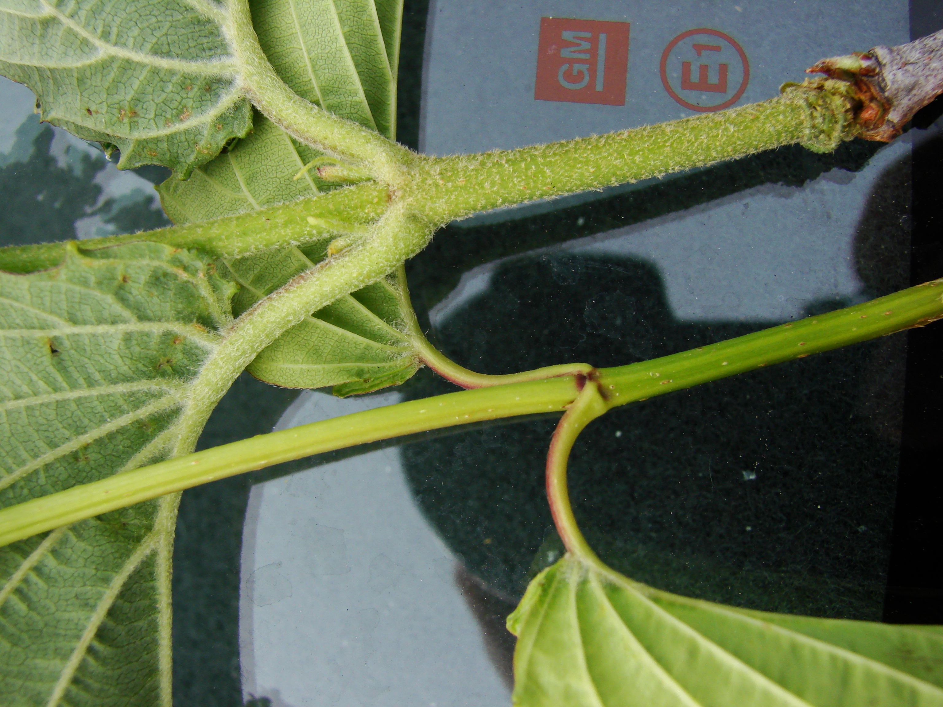 Northern arrowwood has glabrous twigs and petioles or with small straight hairs in the petiole groove.