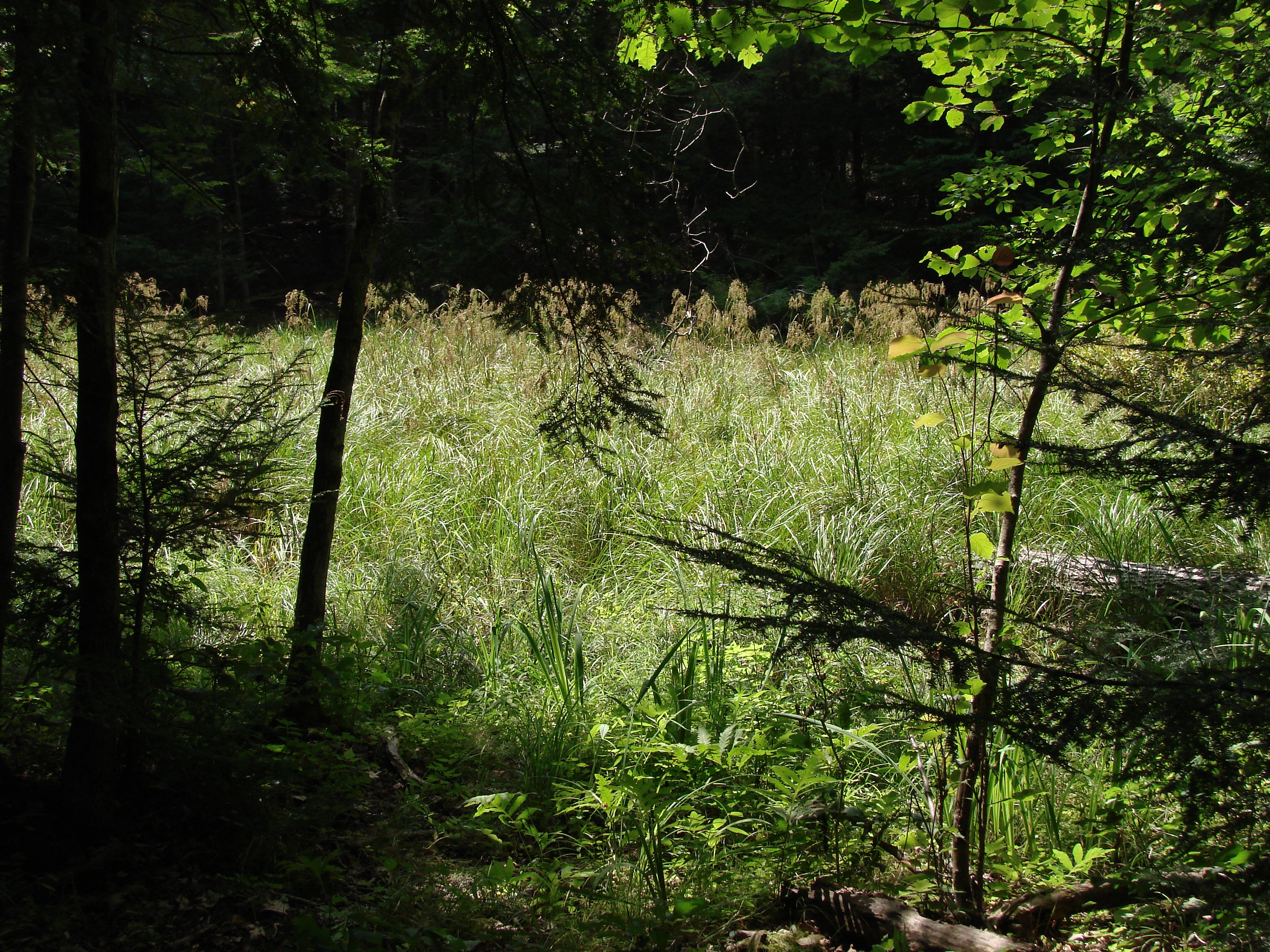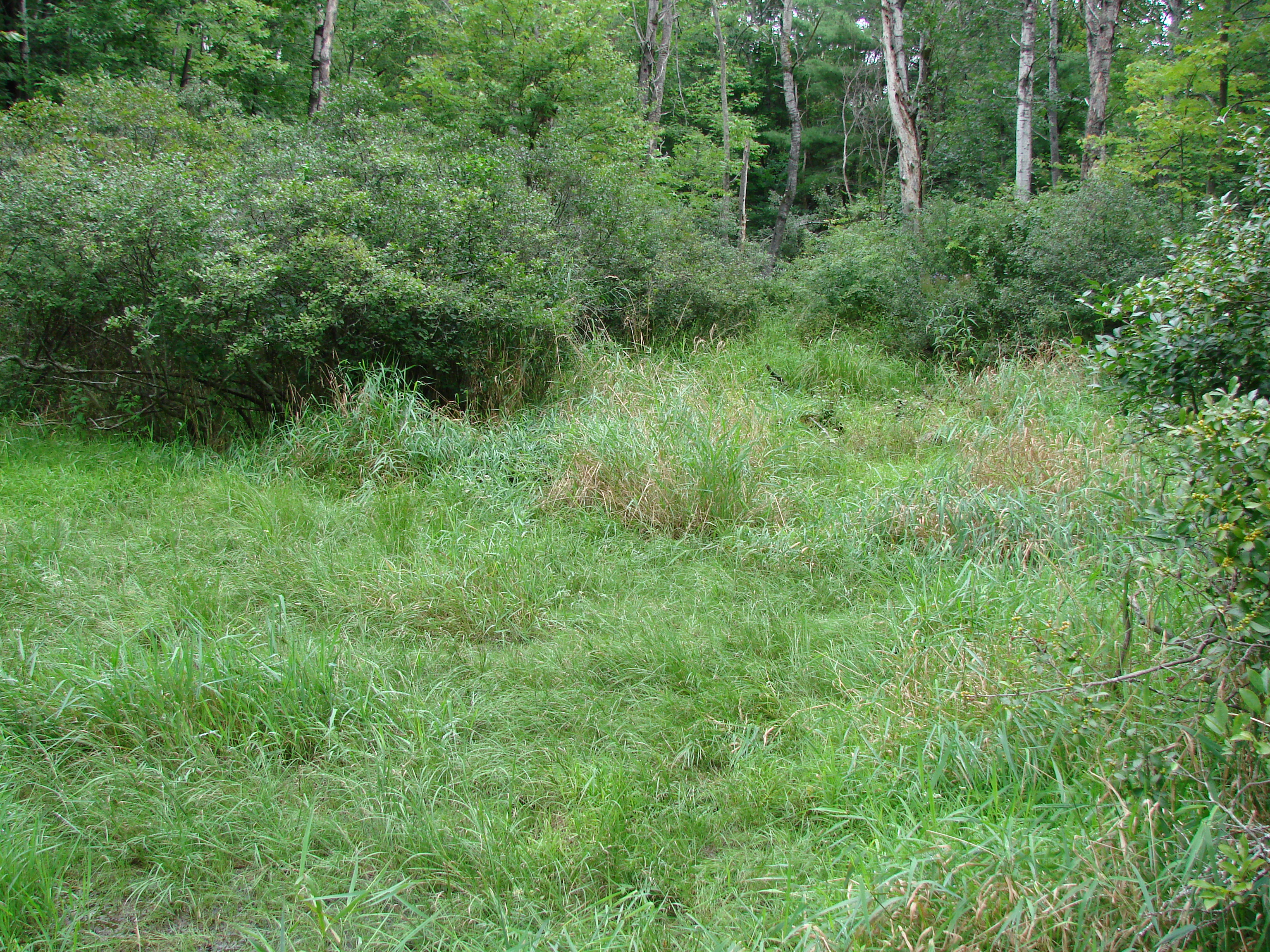 In a state forest in Allegany County the dominant plant in the small wetland was Calamagrostis canadensis.